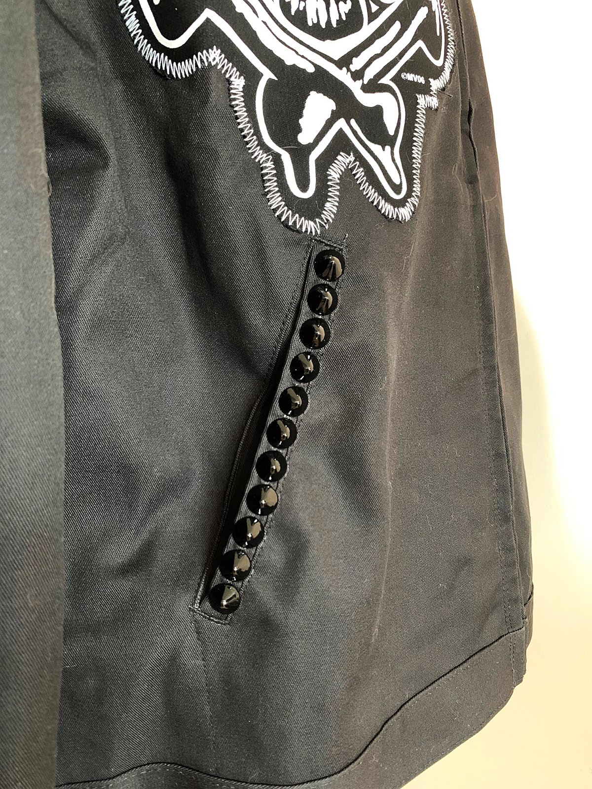This is one of our favas ! This MV Dickies jacket has all the right patches in the perfect spots! The all black hand studding on the collar and pocketing alone is fire!